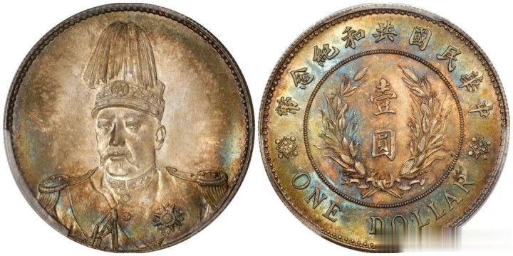 袁世凯像共和纪念壹圆的设计非常精美,在实力玩家心中的地位非常高,与飞龙一样都是实力玩家的必备之物。目前顶级状态的MS级别的高分评级币应该在100万元左右,PCGS SP64可以突破200万元大关,高状态PCGS AU50的成交价在20万元以上。未来在拍卖会上的流通性一定非常高。